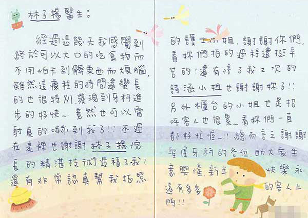 特別要感謝子揚、盧醫師、萱庭及陳小姐、廖小姐等人,
