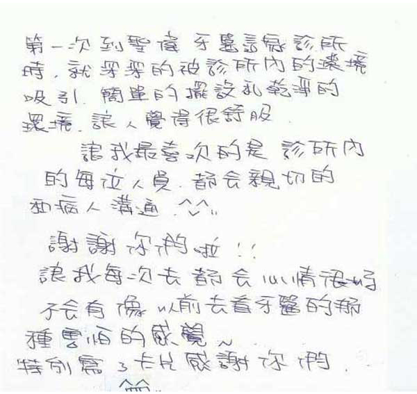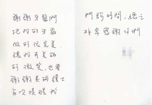 雖然我的才況不好,但兩位大醫生總是很耐心很細心地為我治療,讓我擁有一口美觀又堅固的牙齒,