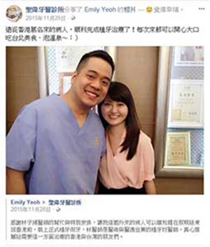 感謝林子揚醫師的幫忙與特別安排,讓我這國外來的病人可以順利趕在假期結束回香港前,裝上正式植牙假牙,林醫師是醫術與醫德並兼的植牙好醫師,真心推薦給需要這一方面治療的香港與台灣的朋友們。