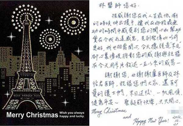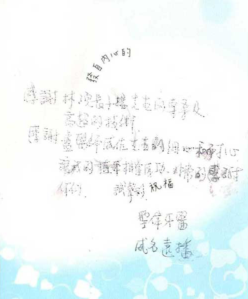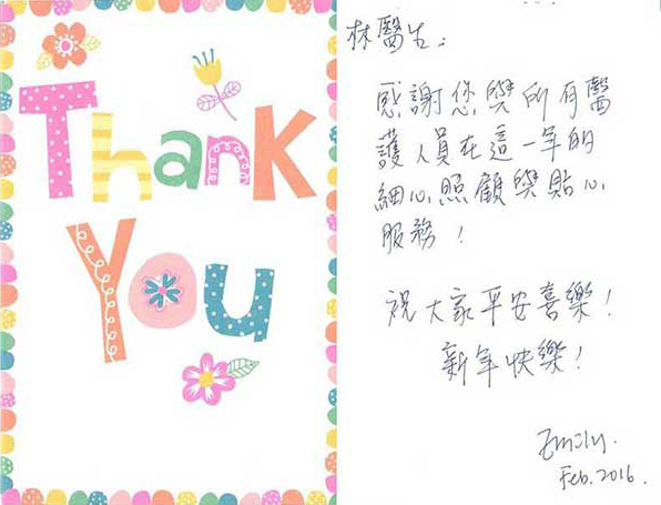 衷心感謝貴院治療期間醫護人員專業敬業的精神,