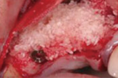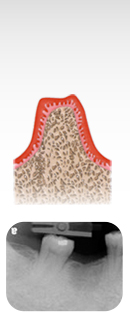 骨脊增厚術,利用骨粉、再生膜等生物科技材料,放入骨脊內,促進缺損處的骨頭再生的術式。先把骨粉放到欲填補的缺損處,然後使用再生膜隔絕表皮軟組織細胞的生長,讓骨粉有時間可以轉化成新生骨。等待約6個月讓骨頭生長,就可以重建喪失的齒槽骨寬度了!