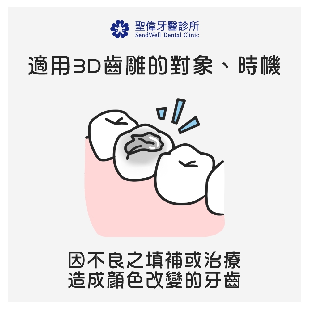因不良之填補或治療,造成顏色改變的牙齒