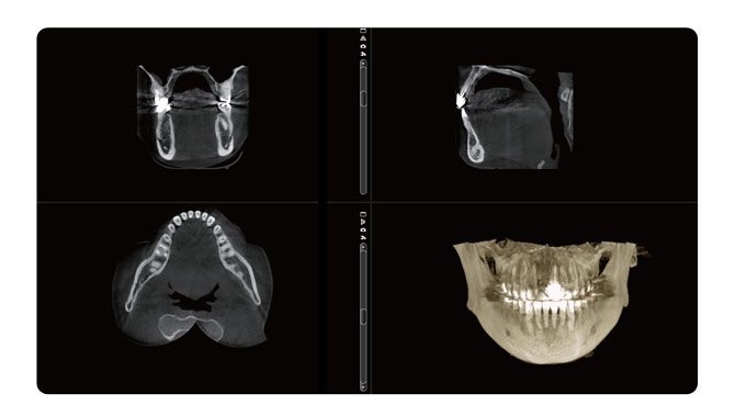 高科技切片影像技術,透過 3D立體造影,利用電腦重組的過程去建立三度空間影像,包含了牙科診斷上所需的各類影像,採 3D Cone Beam 錐狀放射技術、0.5x0.5mm 的X光管球焦點 (X-ray Tube Focal),更大範圍拍攝出更多精準、細微部位。