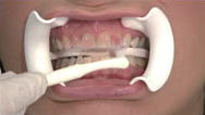 混使用Schure349 工具來去除邊緣的黏著劑,以及沿著臉頰側面與舌側面牙間間隙的黏著劑。