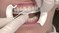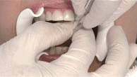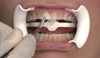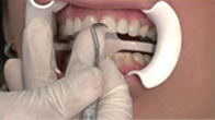 使用探針來檢查瓷牙貼片與牙齒結構的接合情況。通常不應出現凹陷(或腫塊)。