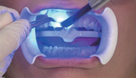使用Sapphire Plus 光源之類的固化燈來加速固化,使用一個 2 毫米尖頭照射中切面邊緣 3~5 秒以固定瓷牙貼片。