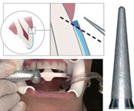 如有需要,可以使用尖細紋型鑽石鑽來處理牙縫間隙和臉頰側面區域。