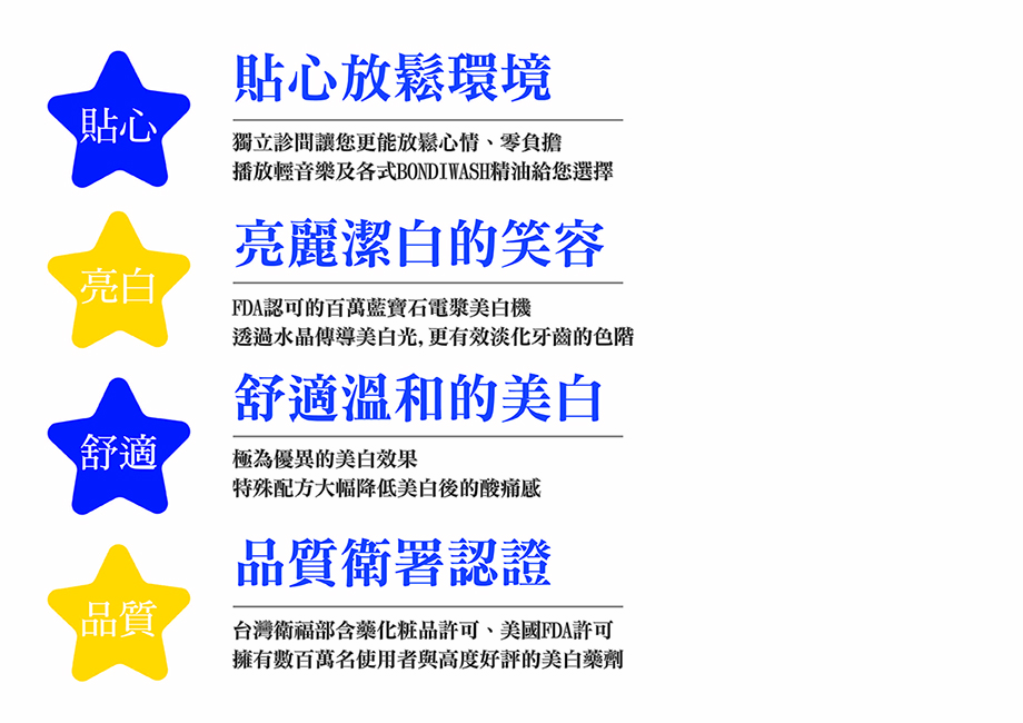 本診所選用的Lumibrite『琉明白』牙齒美白藥劑,是美國暢銷的牙齒美白藥劑,擁有數百萬名使用者與高度好評。除了極為優異的美白效果以外,特殊配方還可以大幅降低美白後的酸痛敏感!如果您曾有牙齒美白後的酸痛經驗,那 Lumibrite 更是您牙齒美白的首選!