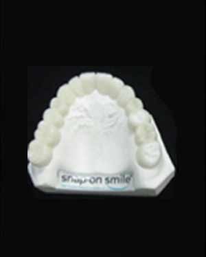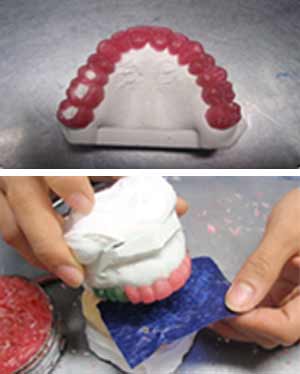 微笑貝齒的製作是透過先建立蠟型(wax-up),鑄造並注入模型。這樣的過程使得微笑貝齒能夠在牙弓各個位置以不同厚度製成,以達到理想的美觀。以下是建立蠟型流程的實例: